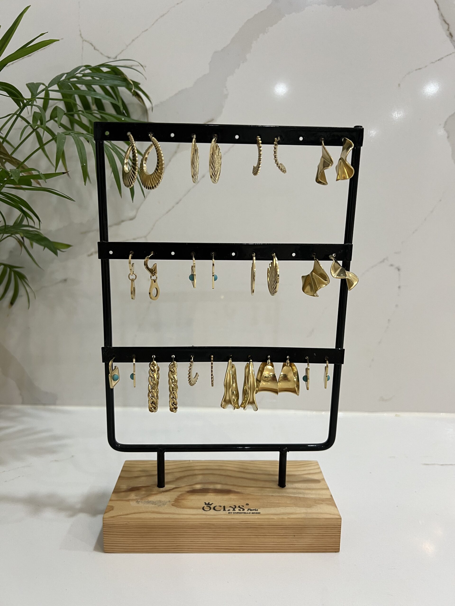 Cette plaque présente une séduisante collection de boucles d’oreilles, chacune soigneusement conçue. Les boucles, fabriquées en acier inoxydable, allient l’élégance classique à une diversité de designs. Chaque paire de boucles d’oreilles, avec ses formes distinctes et son éclat sophistiqué, ajoute une touche de raffinement à toute tenue.