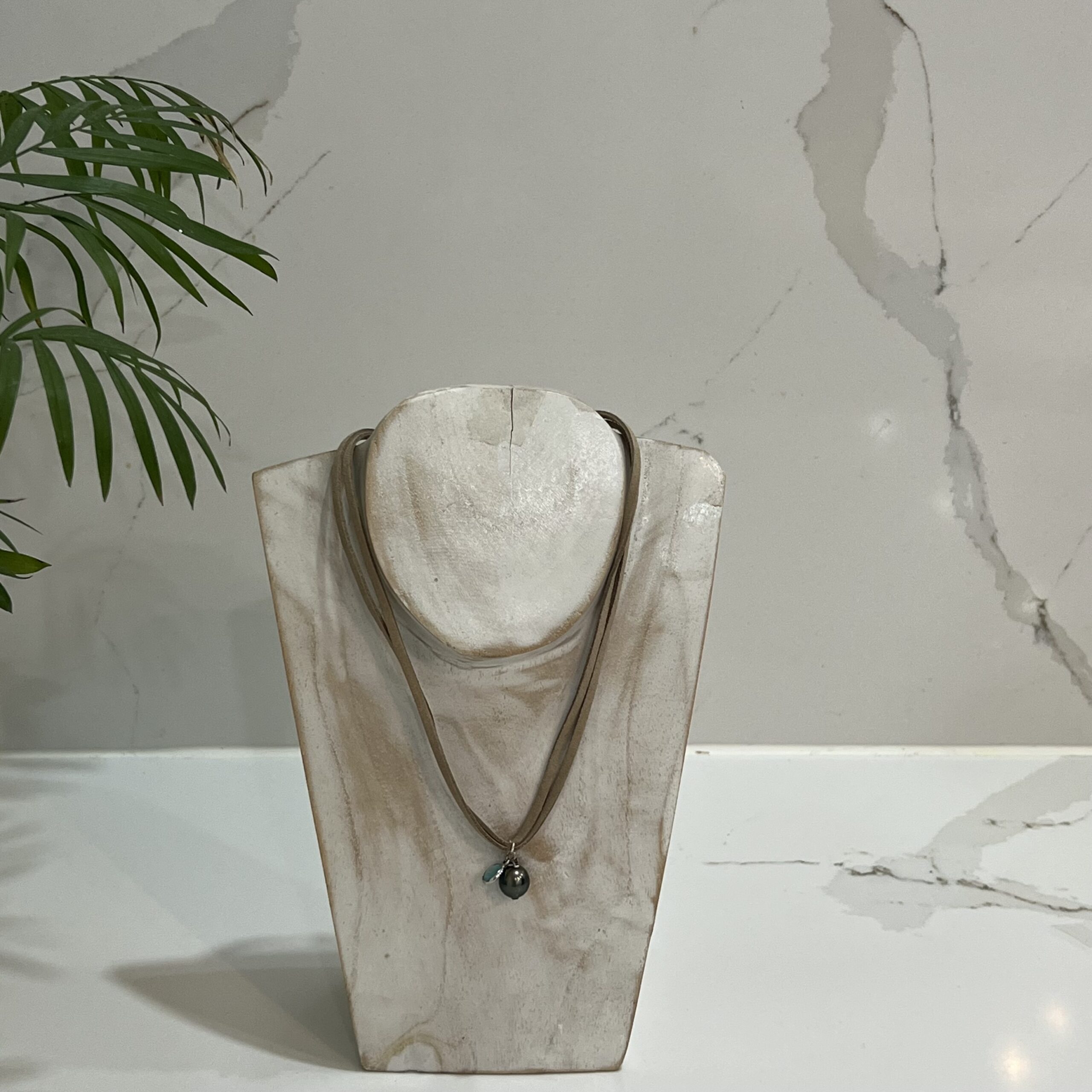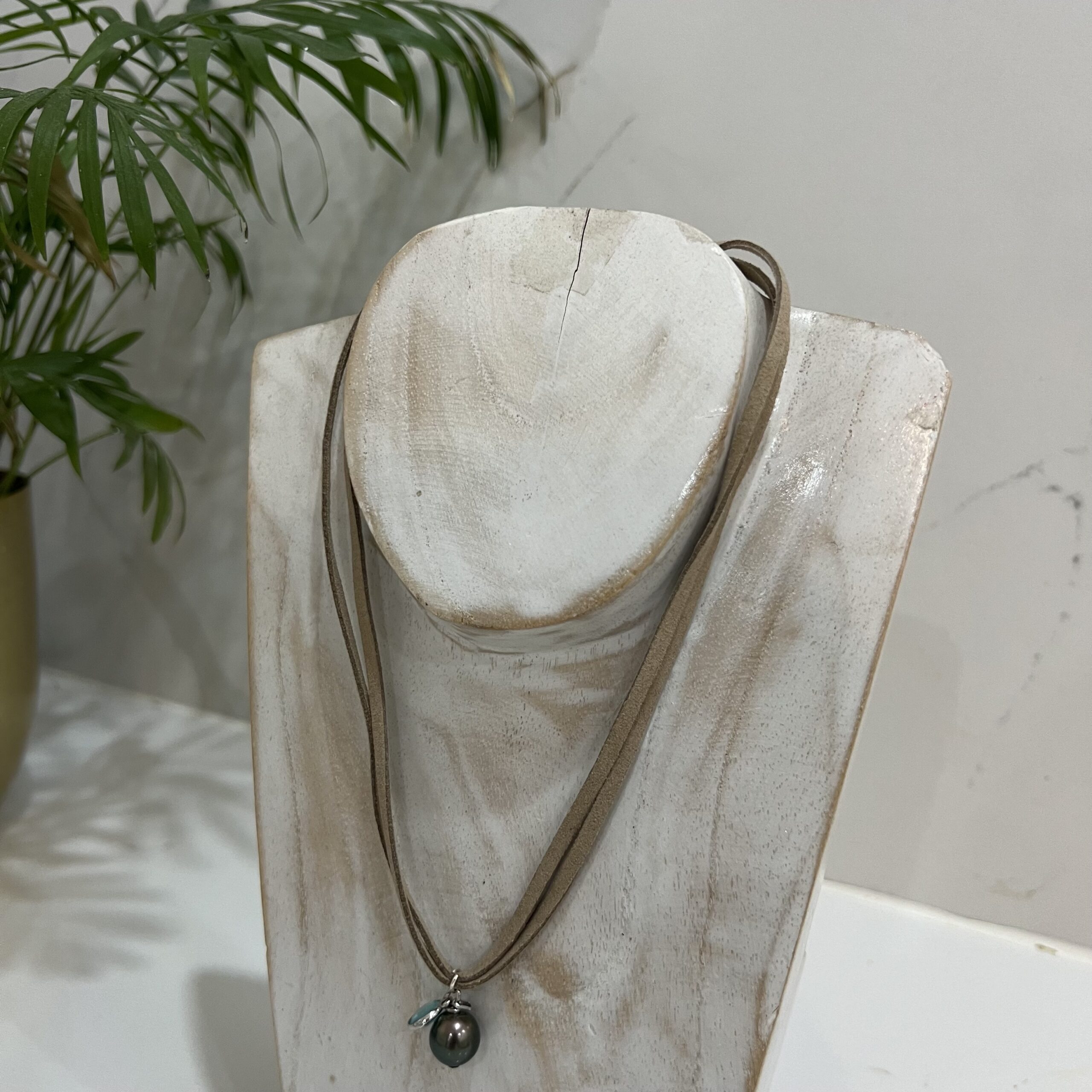Réalisé par un créateur talentueux de la région, ce collier allie avec élégance la finesse du cuir à la splendeur intemporelle d’une perle de Tahiti. La perle, véritable chef-d’œuvre de la nature, trône au centre du collier, captivant par sa teinte riche et sa surface lustrée, créant ainsi un contraste saisissant avec le cordon en cuir. Cet accessoire polyvalent équilibre habilement rusticité et raffinement, incarnant la fusion parfaite entre simplicité et exotisme, ajoutant une touche d’élégance discrète à toute tenue.